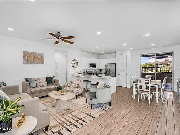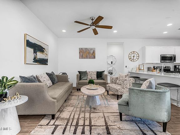 Modern single-story home located in the gated community of Stonehaven in Glendale, perfect for couples of all ages seeking comfort, style, and location. Its open-concept design connects a cozy kitchen fully equipped with a spacious living room, ideal for sharing and enjoying. The dining room, with a view of the covered patio, provides a seamless transition between indoor and outdoor spaces. Close to the vibrant Westgate Entertainment District, State Farm Stadium, and Mattel Adventure Park, this property offers an active and social lifestyle. Additionally, the community features a pool, walking trails, and common areas, creating a modern and secure environment to enjoy every stage of life together.
