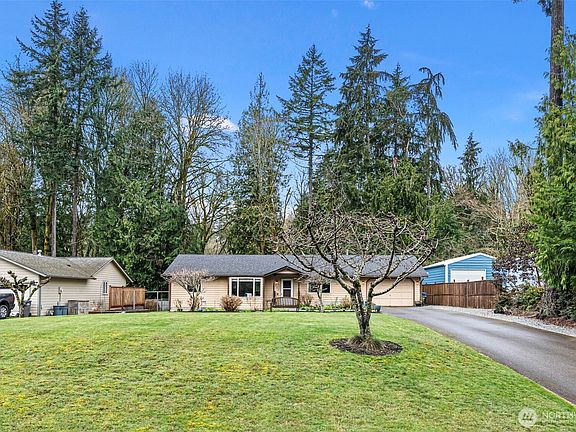 Rare to find such a peaceful well put together 3 bed/2 bath rambler sitting right up against the Illahee Preserve Green Belt. Enjoy the peace & quiet from your covered back deck while hearing the soothing sounds of the seasonal creek, the wind through the trees, and the owls hooting in the distance. This well maintained home sitting on just shy of .5 ac awaits its lucky new owners. Newly updated appliances, fresh paint, newer roof, the primary bedroom with en-suite bath & WIC is opposite the other 2 bedrooms for added privacy. Well maintained yard with sprouting new flowers, trees & fenced back yard complete this perfect home. Wired for a generator, 8x10 outbldg, built in safe, and fully fenced backyard. Don't miss this great opportunity!