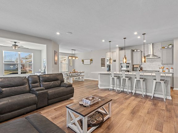 So much to fall in love with!! This beautiful Pulte Ascend/Cottage elevation 3 bath, 2 bed home will have you saying YES, from the moment you pull in the driveway. The contrast between the brick and stone on the front of the house adds to the beautiful curb appeal. Around back you will find more upgrades, like the fully fenced backyard, extended concrete patio, pergola, and more paver edging. Inside you will love the LVP flooring, neutral decor, and more updates in all the right places. The kitchen features a huge, rounded island, tile backsplash, contrasting grey soft close cabinets, and upgraded gas stove with hood! Additional updates include a security and surround sound system and brand-new washer and dryer. Home also features a flex room, used as a gym but would also make a great office, as well as a four-season room to be enjoyed year-round. Greystone neighborhood features a community pool, pickle ball courts, playground, picnic area, and walking trails. Schedule your appointment to see everything this beautiful home has to offer today.
