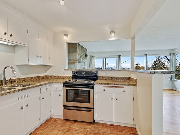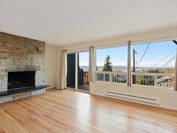 HUGE VIEWS! Top floor, corner unit right in the heart of Phinney Ridge, this 2 bedroom apartment is equipped with stainless steal appliances, new interior paint, and granite countertops. Don't miss the individual garage space, in-unit washer/dryer, wood burning fireplace, beautiful deck and separate patio area. Just steps to bus lines, restaurants, and the Zoo! Owner pays w/s/g. First, lasts, security deposit required. Pets case by case.
