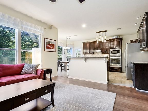 4 bedroom, 2.5 bath home on wooded greenbelt lot features a low maintenance brick exterior. Level lot w/heritage Live Oak and deck. Two-story foyer greets guests into formal dining + dedicated office. Carbonized bamboo floors. Gourmet island kitchen + breakfast room feature a stainless appliance packagew/built-in oven + gas cooktop, espresso cabinetry w/brushed stainless hardware, granite, porcelain tile + pendant lighting. The living room is anchored by a gas fireplace + offers surround sound as well as views overlooking the backyard to the greenbelt. Upstairs game room. Huge master suite offers plenty of room for a sitting area w/greenbelt views + a spacious double vanity bath w/glass shower, garden tub +large walk-in closet. New appliances 2017. HVAC's 2 + 5 yrs old. Recent hot water heater. Enjoy multiple swimming pools, miles of greenbelt hiking trails, the Veloway, highly rated schools + convenient access to HEB, Whole Foods, Costco, restaurants + Alamo Drafthouse.