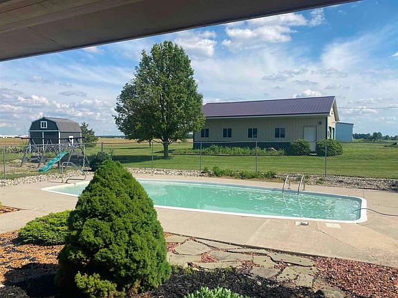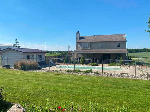 Incredible! 3 bed 2 1/2 bath on over 2 acres in the country! This rare find boasts an open concept main living area that leads to the maintenance free covered back patio overlooking the beautiful in ground pool! Upstairs are three large bedrooms, there is also a partially finished basement, a finished pole barn with its own heat source, a pool house and so much more! Do not miss your chance to own this country oasis!