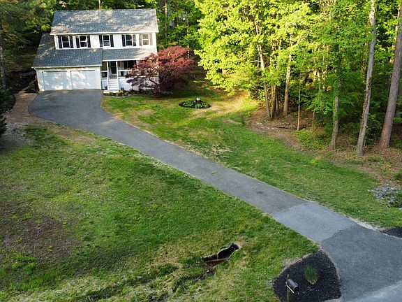 This renovated two story-colonial is nestled in a serene, walkable neighborhood with access to a boat ramp and the expansive private beach. The main level is freshly painted and boasts a cozy living area with stylish updates and new sliders to a 10x20 deck for dining. The kitchen features new appliances, professionally painted cabinets, custom built pantry cabinets and adjacent dining area that provides a charming space for hosting casual evening. dinners. French doors lead to a private office area and feature the solid hardwood floors that run throughout the home. The insulated two car garage includes a large work bench and loft for additional storage. Upstairs you'll find four bright and airy bedrooms, each offering new carpet and ample closet space. The primary suite comes complete with a new ensuite bath featuring double vanity, glass shower door, and body sprays for a spa-like experience. The primary bedroom's walk-in closet is cedar lined and the dedicated vanity area is a wonderful surprise with ample counter space, an oversized well-lit mirror, and dedicated storage for all your essentials. The finished basement provides you with a recreational space, large laundry room, full bathroom and workout/storage area. The walk-out basement leads to a double lot (.878 acres) and is adjacent to unbuildable county property covered with mature trees and a small stream. Additional updates include a new roof and gutters with gutter guards (2022), new HVAC unit 2019, new septic pump 2022, new kitchen appliances 2024, and an existing home warranty.