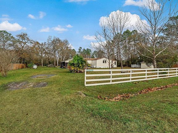 Looking for a little bit of country living away from the hustle and bustle but still close to everything? This 3/2 Triple wide manufactured home sits on 1-Acre. Preserves behind you. This home is very open w/ Lg windows providing natural light, spacious Kitchen with plenty of counter space and Family room perfect for large gatherings. Vinyl Plank flooring throughout. Appliances are new even the gas stove. Roof 7yrs. AC and Water Heater 2022. Foundation has been completely redone with a lifetime warranty. Bring your RV, Boat & any other toys you may have. Zoned for livestock, chickens and Horses. Property is fenced on all sides except partial openings in the front for Vehicle entrance. Detached Carport can be made to whatever space you desire. Open opportunities for this property.