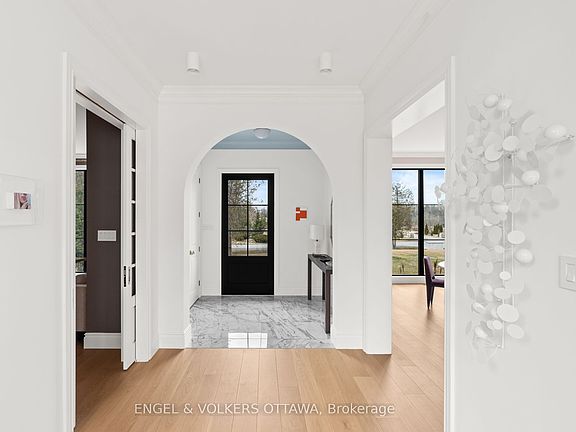 Nestled within the coveted enclave of Rideau Forest in Manotick, this exceptional custom-built 2-storey architectural masterpiece exemplifies unparalleled craftsmanship, attention to detail, and refined elegance. Every inch of this magnificent home has been meticulously curated to offer a living experience that is both luxurious and timeless.Upon entering, you are immediately captivated by sweeping floor-to-ceiling Pella windows that bathe the home in natural light, perfectly complemented by luxurious white oak flooring, which adds warmth and sophistication throughout.The designer kitchen will leave you breathless with endless stunning details, including Cedar Ridge Designs custom cabinetry, a luxurious marble backsplash, quartz countertops, and an expansive island, ideal for both casual dining and entertaining. A beautifully appointed pantry enhances both storage and organization.The private primary suite wing offers a peaceful retreat, featuring a custom walk-in closet and an exquisite en suite bath with luxurious finishes, a freestanding soaking tub, a large shower, and dual vanities.This residence boasts six elegantly appointed bedrooms and six stunning bathrooms, each thoughtfully designed to provide the utmost comfort and privacy. The inclusion of an expansive in-law suite further enhances the home's versatility, offering the perfect balance of independence and connection.A true masterpiece, this home showcases extraordinary millwork throughout, from intricate moldings to bespoke cabinetry, with each element speaking to unmatched attention to detail. The fully finished lower level includes two bedrooms, family room and a bathroom, offering a perfect retreat for guests or family members.This residence is not simply a place to live; it is an invitation to experience refined living at its finest. A rare opportunity to acquire a property of such distinction, where every detail has been carefully considered to create a home that is both a sanctuary and a statement.