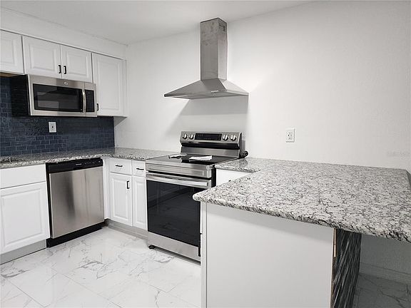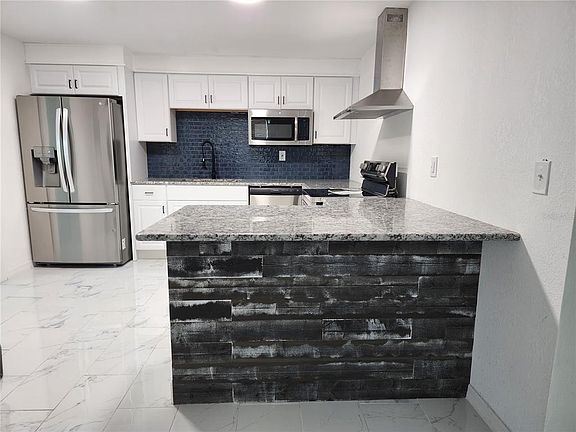Completely Transformed in Port Richey! This beautifully renovated 4-bedroom, 2-bath home has been reimagined from top to bottom with modern upgrades and thoughtful design. Freshly painted inside and out, it features durable ceramic tile flooring throughout—no carpet anywhere—and brand-new Energy Star vinyl windows for efficiency and comfort. Step into the chef’s kitchen, where you’ll find all-new stainless steel appliances, granite countertops, a stylish ceramic backsplash, farmhouse sink with pull-down faucet, and a breakfast bar accented with shiplap trim. Both bathrooms and all lighting fixtures have been tastefully updated, while new raised-panel interior doors, hardware, and trim complete the fresh interior look. Major updates give peace of mind: new central A/C plus a mini-split in the primary suite, updated plumbing and wiring, all new ductwork, one new electric panel and 2nd panel to be replaced soon. There’s also a convenient indoor laundry area with stackable washer/dryer hook-up. Outside, enjoy the low-maintenance insulated vinyl siding, a new concrete driveway, sidewalk, and back patio overlooking a large fenced yard with storage shed (new roof included!). Located in an up-and-coming area of Port Richey, this home hasn't taken on floodwaters since the current owners purchased in 2013—even through two recent hurricanes—despite being in an AE flood zone. Move-in ready and fully transformed—schedule your showing today!