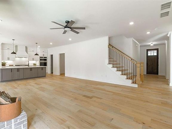 Brick fireplaceHardwood floorsExquisite custom homeRich architectural detailingThree large guest suitesQuartz countertopsSolid wood cabinetry