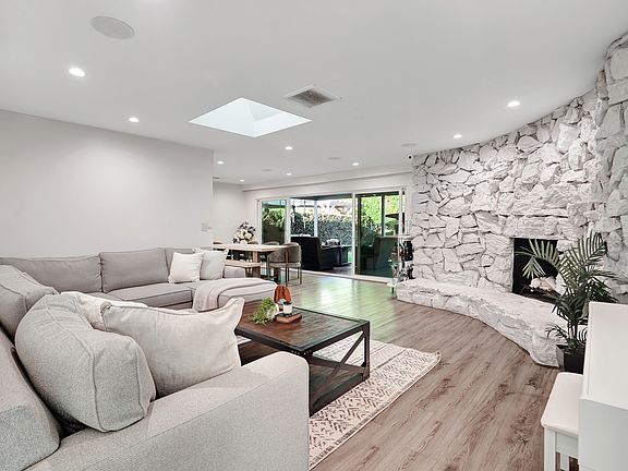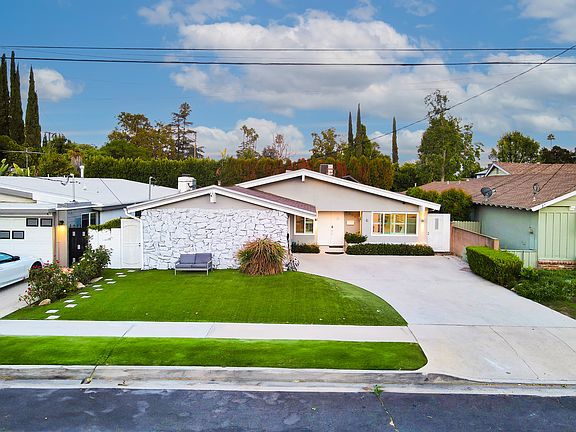 Welcome to this beautifully remodeled gem in the heart of desirable Valley Village! Featuring 4 spacious bedrooms and 2 updated bathrooms in a truly open and bright living space! This home has everything you need and more. The stunning new kitchen has top appliances and so much space to cook & host dinner parties. The luxurious master suite is complete with a large closet and double sink vanities. Step outside to your private oasis a spacious and hedged backyard with a gorgeous patio area and low-maintenance synthetic grass throughout the property, perfect for entertaining or relaxing. The attached garage, fully drywalled and floored, can easily be used as additional living space, as a playroom, office or gym space! Other amenities include smart- home automation, recess lighting, surround sound speakers in the main rooms, camera systems, and capability to hook up EV charging . With ample parking in the driveway, this home is nestled in a cul-de-sac, just moments away from NOHO West, top entertainment, shopping, and places of worship. Don't miss the chance to live in this incredible property in one of the most sought-after neighborhoods! Renter is responsible for utilities.