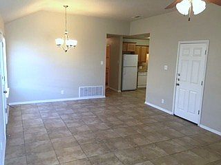Step into this spacious 3-bedroom, 2-bath home featuring an open-concept floor plan (Plan 2460) designed for both comfort and function. Approximate Room Measurements: Living/Dining: 22.9 x 14 Bedroom #1: 10.5 x 10.3 Bedroom #2: 10.5 x 9.10 Master Bedroom: 14.9 x 13 Interior Features: Open living and dining area with ceiling fans and faux blinds Modern kitchen with tile backsplash, refrigerator, oven/stovetop combo, dishwasher, and microwave Granite countertops in bathrooms Washer/dryer hookups for your convenience Extra storage and automatic garage door with opener Additional Perks: Alarm system installed (subscription required) Exterior quarterly pest control included Lawn maintenance available Private fenced yard Great Location: Close to Lions Club Park, schools, and shopping everything you need just minutes away.