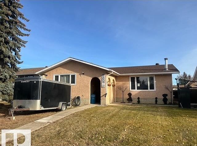 Great Potential with this bungalow located on a quiet street. A covered front entry, 3 Bedrooms upstairs, 2 full bathrooms, a sunny kitchen and cozy living room. Basement is partially finished. Huge backyard with a double garage and back driveway.