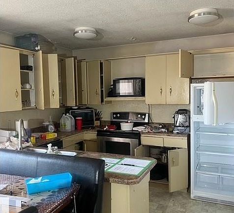 Covered front entrySunny kitchenHuge backyardDouble garageBack driveway