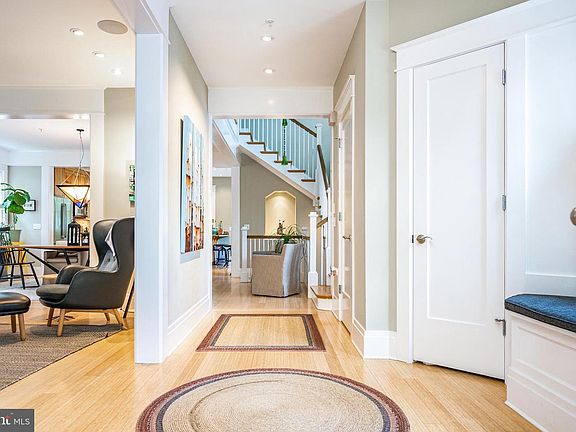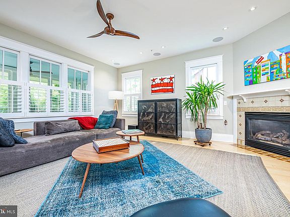 Enjoy classic charm with the comfort and convenience of newer construction in this delightful Craftsman style bungalow. Built in 2003, the home features fine architectural details, quality finishes and an open floorplan. The main level includes a gracious entry hall with built-in window seat and a powder room, living room with gas fireplace, separate dining room with built-in glass-front cupboard, a spacious and well-equipped kitchen with granite counters and stainless steel appliances and a sitting/breakfast area opening to a deck and back garden. The second level features four bedrooms and two full baths, including a master suite with vaulted ceiling, walk-in closet and en suite bath. A fifth bedroom and third full bathroom are located on the third level. In the lower level you will find a large rec room with an ingenious light well that fills the space with natural light, an in-law or nanny suite with sitting area, the sixth bedroom and fourth full bath, kitchenette and separate entrance. The laundry, utilities and storage are also in the lower level. For added comfort there are heated floors throughout the house (except the third floor) as well as forced air heating and, of course, central air conditioning. The house is also wired throughout for sound and video. (Ask agents about sound equipment in rec room closet.) The yard is level and fully fenced with a patio in the back. A two-car garage is accessed from the rear alley. Walk to shops and eateries and to the Capitol Crescent Trail and C&O Canal.