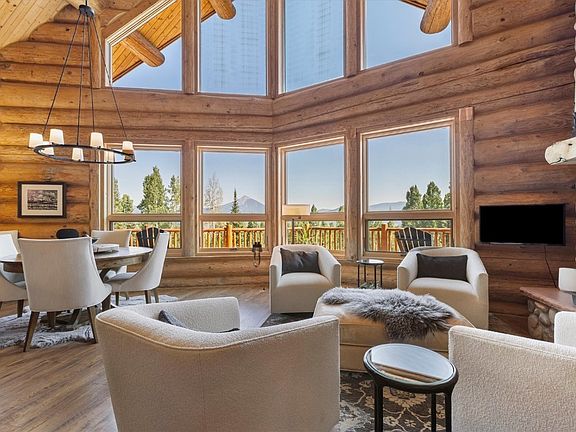 Panoramic mountain viewsMontana log homeNatural log interiorsModern fixtures and finishesSpectacular unobstructed viewsUnmatched hahns peak viewsModern comfort