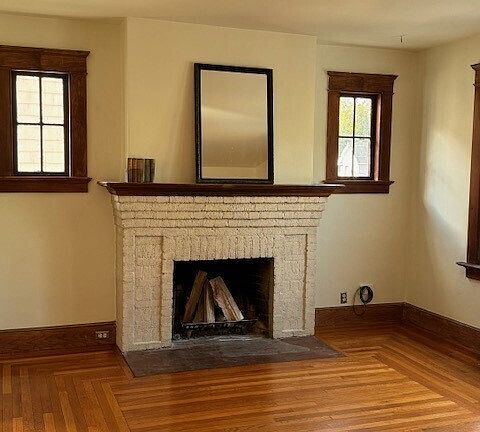 Light filled roomsBeautiful natural wood moldingsOff-street parkingDecorative fireplaceHardwood floors