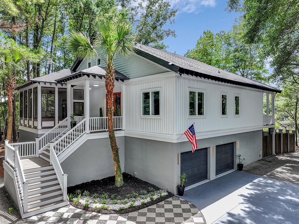 PRICED BELOW RECENT APPRAISAL! Tucked within the quiet waterfront neighborhood of Alston Point, this thoughtfully redesigned Lowcountry home pairs modern elegance with classic Southern charm. Practically new and beautifully finished, this six-bedroom, five-and-a-half-bath residence sits along the peaceful banks of Alston Creek, offering a truly exceptional setting for Lowcountry living. Homes here are consistently in demand, offering a rare blend of privacy, space, and water access just minutes from town. Enjoy beautiful oak flooring throughout and a show-stopping kitchen featuring quartz countertops, stainless appliances, a gas range, built-in refrigerator, and a large kitchen island with bar seating--perfect for gatherings and everyday living.The living room features a dramatic floor-to-ceiling electric fireplace, while the formal dining room offers a stunning view of the creek. This home offers three inviting porches: a screened front porch just off the guest bedroom, a sprawling back deck off the main living area ideal for entertaining, and a private upper deck off the primary suite perfect for morning coffee or evening relaxation. Custom coffered ceilings with inset lighting add architectural elegance to both the living room and entry foyer, creating a warm and elevated atmosphere as soon as you enter the home. A built-in wet bar with a wine and beverage cooler offers the perfect space for hosting guests with ease and style. Three main-level bedrooms each have private en-suite baths. Upstairs, retreat to a spacious primary suite with a walk-in closet and spa-like bath, alongside an additional guest suite with its own full bath. On the lower level, you'll find a sixth bedroom/flex space ideal for a guest room, gym, office, or media room. The oversized garage is a standout feature, offering ample space for multiple vehicles and dedicated storage, with epoxy-coated floors that make the space both functional and polished. Don't miss your opportunity on this home!