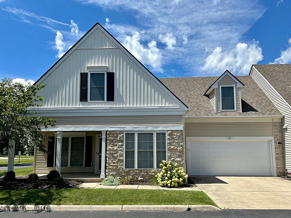 Amazing opportunity to live in this 4 bed, 2.1 bath condo in a fantastic community with Olentangy schools. With wood and LVP floors throughout the first floor, this end-unit home has 4 spacious bedrooms plus a loft that would be perfect for a home office or entertainment/media room. The first floor owners' suite has been updated with a newer bathroom containing granite countertops, a garden soak tub, and larger shower. The updated kitchen has granite countertops and stainless steel appliances. Adjacent to the kitchen is a nice-sized dining room with large windows that bring in plenty of light. First floor guest bedroom with French doors has a large walk-in closet. The main living room has plenty of natural light, vaulted ceilings, a gas fireplace, skylights, and sliding doors to a private patio in the back. A 2-car attached garage, ceiling fans in all the bedrooms, and the spacious loft over-looking the great room, round out this lovely condo. Includes use of the community clubhouse and pool. Close to Old Powell with shops and restaurants.