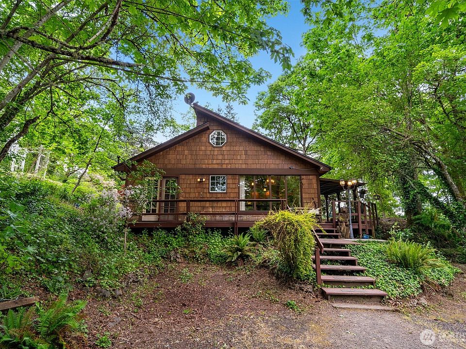 Incredible View, Centrally Located, Private, Gem In Heart Of Kalama! Lofted Cabin In the Trees Over Looking The Columbia River. 2 Full Bedrooms and Baths on The Main Floor With Nook/Bedroom And An Open Loft Upstairs. Drink Coffee And Enjoy River Views From The Covered Porch. Includes 2 Car Detached Garage/ Shop With Power. New Roof Last Week! All Plumbing, Wiring, and Insulation Replaced Only 12 Years Ago. Fish Pond and Zen Garden. Quiet, Private, Views and Minutes From I-5, Boat Ramp, and Water Front Park! Possibly Assumable 375k @ 5.25% FHA Loan
