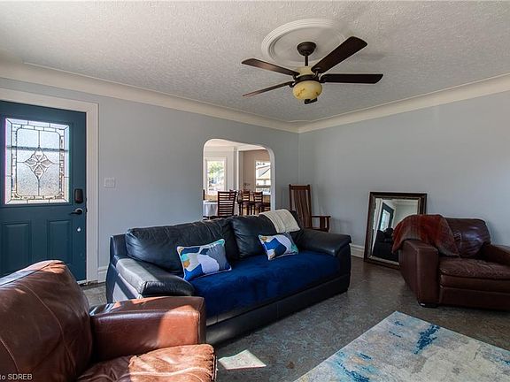 Welcome to 581 Peel St! This 3 bedroom 2 and a half bath is the perfect home in which to raise a family. Nicely fenced in yard with access to single car detached garage. Nicely landscaped. The house is a one and a half story home is predominantly brick with some fashionable vinyl siding added. Inside is a lovingly maintained home with an excellent layout designed for entertaining, while still allowing lots of room for quiet time! Upstairs contains 2 good size bedrooms with a 2 piece bath in the middle..access from both sides avoiding washroom trips down the stairs! Kitchen has gas stove with optional electric hookup. Master bedroom located just off the main floor bath. BONUS ROOM with access to the backyard gives this home such a fantastic feel. Rec room downstairs allows for extra entertaining room, or could double as a fourth bedroom. Beautiful walk in shower is located just off the rec room. Downstairs laundry. Updated furnace and central air. Roof is about 6 years. Call for your appointment today!