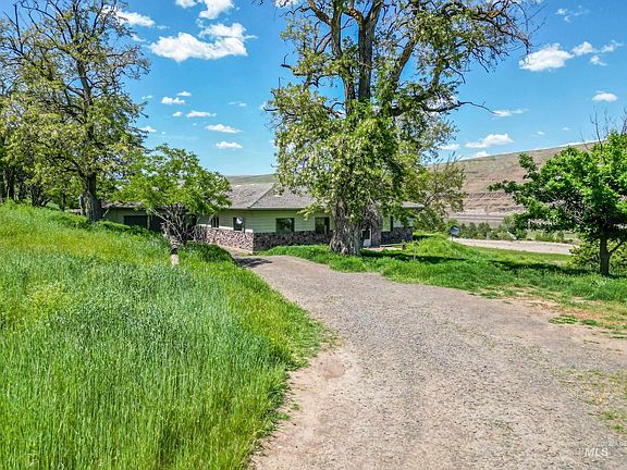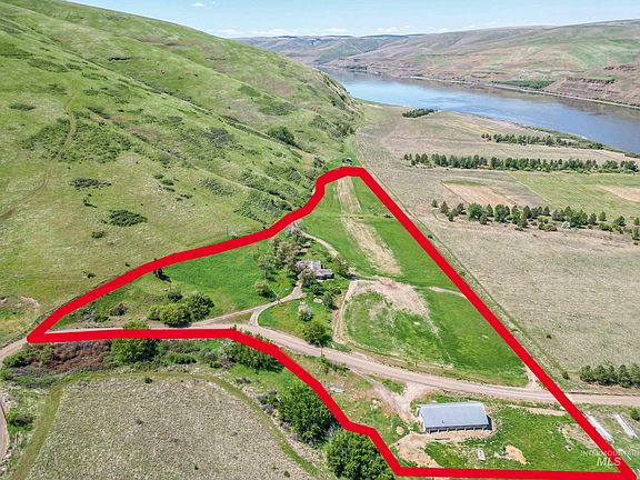 INVESTMENT PROPERTY!! This home and barn sits on over 12 acres surrounded by wildlife, farmland, pasture and a government wildlife habitat area. Only 1/4 mile from the Snake river with salmon, steel head, bass, catfish and sturgeon fishing. Easy legal access to the river and beaches, boating and fishing. No neighbors for over 10 miles, yet the road is maintained and plowed by the county. Large main level with picture windows facing the river, open concept and expansive views up and down the canyon. Mule deer, whitetails, turkey and pheasant right out your window. Basement is not finished but has a large living area, bedroom and bath, lots of storage and tall ceilings. The outstanding setting of this house and acreage is priceless. Escape and enjoy! Selling AS IS.