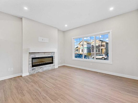 Move-In Ready | 2024 Build | East/West Facing | 1,580 SqFt | 3-Bedrooms | 2.5-Bathrooms | Incredible Living Space | Quartz Countertops | Stainless Steel Appliances | Beautiful Finishes | Open to Below Ceilings | Pot Lighting | Open Floor Plan | Electric Fireplace | Large Windows | Upper Level Laundry | Side Entry to Basement | Alley Access. Welcome to your stunning 2-storey home in Bayside with 3 bedrooms, 2.5 bathrooms and an expansive living space. The main and upper levels boast 1580 SqFt with an additional 701 SqFt in the unfinished basement. Open the front door to a foyer with views into the open concept main level. The front living room is framed with large windows beaming with morning sunlight through the East facing windows. The living room is paired with an electric fireplace adding both style and comfort to this space. The open floor plan compliments a smooth transition from living to dining. The kitchen is outfitted with ample cabinet storage, a bold and stylish black herringbone accent backsplash, quartz countertops, stainless steel appliances and a centre island with barstool seating. The kitchen is also includes a gas line to the stove! The kitchen has a pantry for dry goods storage too! Off the kitchen is a rear coat closet and back door that leads to the backyard and rear parking pad. The main level is complete with a 2pc bath. Upstairs holds 3 bedrooms and laundry. The primary bedroom is grand with a walk-in closet and a private 4pc ensuite bath with a walk-in shower and a double vanity. Bedrooms 2 & 3 are both a great size with closet storage and share the main 4pc bathroom with a tub/shower combo. The laundry is located on this upper level in a deep closet to not take away from any of your living space. Downstairs, the basement has a separate side entry and has rough-in plumbing! This space can be easily transformed to fit your family's needs. Outside is a great sized backyard with space for a deck and a rear detached double garage! Hurry and book your showing at this incredible family home today!