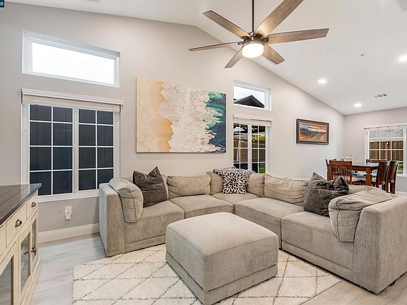 SHOWSTOPPER. This stunning home has been meticulously uplifted with modern luxury. Step in through the beautiful front porch and be greeted by a spacious living/dining area that boasts high ceilings and lots of natural light. The stylish kitchen and family room lead to a generous backyard, designed to make great memories. The home’s excellent floorplan offers separation between the downstairs living area with guest bathroom, and the upstairs bedroom area with 3 bedrooms, a bath, as well as a luxurious owner's suite. The stylishly-renovated house has been improved with a new electrical system, recessed lighting, smart switches, Gemstone permanent outdoor architectural/holiday lights, new HVAC with dual zone and electronic air filter, new windows, ceiling fans, gas fireplace, heated bathroom floors, and much-much-MUCH more. Every detail was thoughtfully designed with convenience in mind. MASSIVE, OWNED SOLAR system and Tesla Powershare brought the electric bill down to $0! Livermore is perfect for those in pursuit of a more relaxed, less congested lifestyle. With excellent schools, great outdoor spaces, wine region, and a Historic Downtown that offers shopping, fine dining, cinema, and theater. No better location for the quality lifestyle offered by this beautiful home and yard.