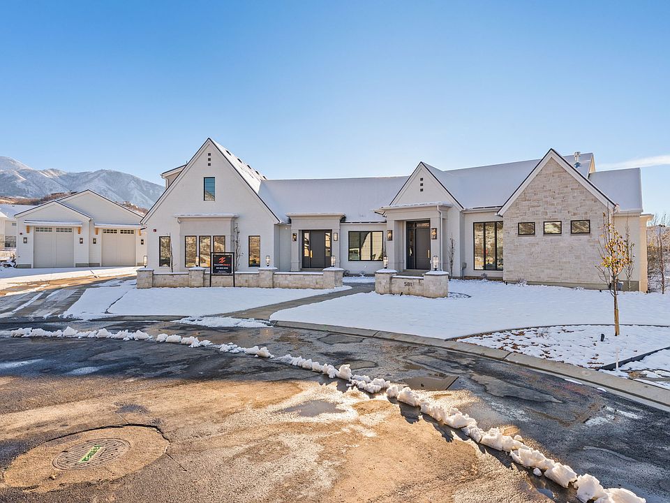 Luxury, space, and unbeatable privacy come together in this standout Dalcon Homes estate. Set on a hard-to-find -acre lot at the back of a quiet cul-de-sac in the four seasons subdivision, this newly built 8,000+ sq ft residence offers the kind of setting and craftsmanship rarely available in South Utah County. From the moment you step inside, the quality is undeniable. White oak flooring, custom cabinetry, high-end quartz countertops, designer lighting, and a custom fireplace set an elevated tone throughout. The main level is open, spacious, and thoughtfully designed-a place where family and friends can gather comfortably. The gourmet kitchen is complemented by an oversized butler's pantry, while the large laundry room and private office entrance add true convenience. The primary suite is a luxurious retreat featuring a pass-through fireplace, Rainhead showerheads, and a fully custom master closet crafted with exceptional detail. The walkout basement continues the home's impressive design, offering exceptional spaces for gathering. Complete with a 20 foot bartop, theater room, golf simulator room, gym, and a second kitchen and expansive lounge areas-perfect for holidays, parties, and everyday family time. A separate ADU apartment above- with its own full kitchen adds valuable flexibility for guests, family, or rental income. Outside, the home is fully landscaped with concrete walkways, a stone wall and features a detached 45-foot double-door RV garage-perfect for RVs, trailers, toys, or additional storage.