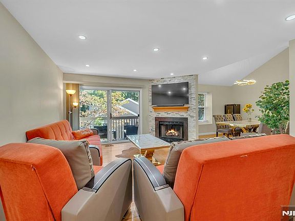 Welcome to this stunning, fully renovated townhome in the sought-after Windsor Square community! Bright, airy, and move-in ready, this picture-perfect home features 2 bedrooms, 2.5 baths, and a first-floor entry with a welcoming foyer, powder room, and a spacious living room showcasing gleaming hardwood floors, a wood-burning fireplace, and sliders leading to a private deck — perfect for relaxing or entertaining. The dining room boasts high-vaulted ceilings, creating an open and elegant feel, while the beautiful modern kitchen offers granite countertops, stainless steel appliances, and sleek contemporary finishes. Plus features drinking water filter under sink! primary bedroom suite is located on the lower level and features a private patio, generous closet space, and a full master bath. On the same level, you'll find a second comfortable bedroom and a laundry room with a brand-new washer and dryer, adding to the home's convenience and functionality. Enjoy the benefits of an attached garage and outstanding community amenities, including a lovely community room, gym, sauna, steam room, and an outdoor pool. Ideally located near the George Washington Bridge, major highways, shopping, and top-rated schools, this exceptional townhome combines modern style, comfort, and convenience in one of the area's most desirable communities. A third-party source on Zillow has incorrectly listed this property as being in a flood zone. Verified flood search confirms it is not located in