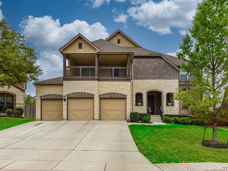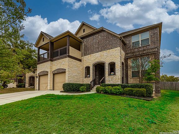 Magnificent and beautiful home on a huge 1/3 acre lot in the highly sought after gated community of Lonestar Westwinds in Alamo Ranch! This perfect sized home has it all---Office; Gameroom; Media Room; Upper level balcony with amazing views, a 3 car garage and solar panels! The gourmet kitchen includes gas cooking, double ovens, stainless steel appliances, recently upgraded backsplash and a large island with pendent lights and room for barstools. Notice the nearly new tile flooring downstairs and the excellent workmanship on finishing the office. There's a breakfast nook and a lovely formal dining room for those special occasions. The large family room has windows galore for lots of natural light and a cozy fireplace. The master suite is downstairs and provides plenty of room with bay windows and its own private bathroom with double vanities and separate tub and shower. The excitement continues as you venture upstairs! Three nice size secondary bedrooms---but wait, there's more---a stadium media room for you movie and sports fans; a huge game room for your other entertainment needs and a big covered balcony with amazing views for relaxing or gathering with friends. Welcome to your new home in the heart of Alamo Ranch near the new HEB, shopping and quality NISD schools!