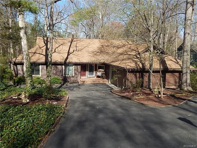 Lovely Brandermill Harbour Pointe 3-bedroom, 2 full bath Rancher on Naturally Wooded Lot, Spacious 19x14 Master Suite with 2 adjacent closets, linen closet and double sink quartz vanity and large shower. A separate door leading to the private rear deck round out this great master suite area. Galley Kitchen with newer Quartz countertops, Jenn-Air cooking, recessed lighting, open to large 17x15 Morning Room that has separate access to a deck. Formal rooms include a 14x12 Dining Room and 21x18 Family Room that has a built-in bar overlooking the Morning Room, ceiling fan with light, built-in bookcases and gas log fireplace. French doors lead to an 18x14 private rear deck. A 20x14 screened porch with ceiling fan with light overlook a private wooded area. A lovely landscaped yard surrounds this easily maintained property. Walk to the community pool and lake. Close to community golf course, tennis courts and fitness center as well as schools, shopping and churches. 5-minutes from Route 288 and major highways. Upgrades include: 2009 York Affinity 8T Heat Pump, 2006 50-year roof, 2011 vinyl siding and triple pane windows, 2016 water heater and all new interior paint.