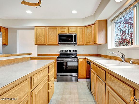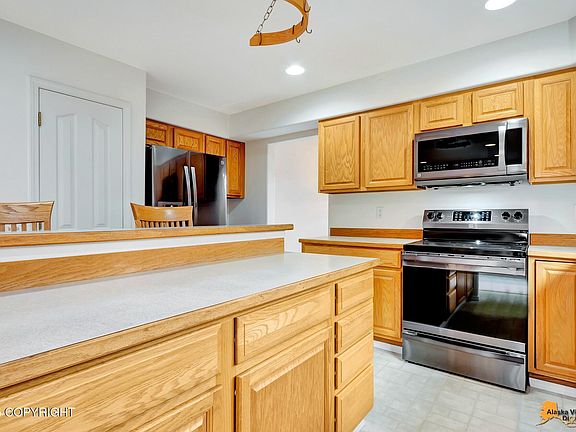 Beautifully maintained 4 bed, 3 bath home with vaulted ceilings, a cozy fireplace, and an open kitchen with large island and plenty of storage. Spacious primary suite features a soaking tub and walk-in closet. Enjoy a huge yard with mature trees, a wraparound patio deck and space to park other vehicles Three-car garage offers even more space. Great location, ideal for comfortable Alaska living.OH SAT 11/15 from 1-3pm