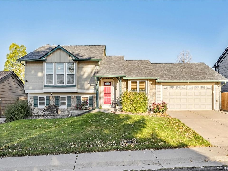 Updated Split-Level in Parkborough with Oversized 3 Car Garage– Move-In Ready Top to Bottom! You’ll love the sunny, west-facing main level featuring formal living and dining rooms and a spacious kitchen with 42” maple cabinets, soft-close drawers and pull-outs, Corian countertops, brand-new stainless steel appliances, and heated tile floors. Upstairs, you’ll find two generous bedrooms that share a fully updated hall bath—complete with a heated floor and private access from the primary bedroom. The lower level offers a cozy family room with a gas fireplace and custom mantle, plus a guest bedroom, updated ¾ bath with heated tile floors, and laundry area. The partially finished basement provides even more flexibility—ideal for a home office, gym, hobby room, or extra storage. Step outside to your park-like backyard featuring a composite deck with built-in lights and a gas line—perfect for grilling and summer entertaining. The fenced yard is great for kids and pets, and there’s even a storage shed for tools and equipment. Car enthusiasts and hobbyists will love the HUGE 910 sq. ft. fully insulated garage with built-in cabinets and a workbench. Additional Highlights Include: Ring doorbell included, central A/C + ceiling fans in every room, newer 50-gallon water heater (2022), Ting Fiber 2G Internet, exterior painted in 2020, newer Class 4 roof (2022), quiet neighborhood location with easy access to Southlands, E-470, DIA, DTC, and more! Don’t miss this terrific home that’s truly move-in ready—updated, comfortable, and loaded with extras!