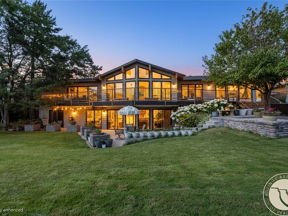 Located on the 10th hole of the Yellowstone Country Club Golf Course, this stunning home blends timeless design with modern luxury. Inside, European white oak herringbone and bamboo hardwoods pair with vaulted ceilings, timber beams, and floor-to-ceiling windows showcasing sweeping golf course views. The newly landscaped yard and an expansive south-facing deck, rebuilt in 2025 and accessible from the kitchen, family room, and primary, offer the ideal setting for sunsets and entertaining. Featuring 5 bedrooms and 4.5 renovated baths with quartz or marble countertops, heated towel racks, and designer finishes, the main level includes two bedroom suites, one with dual baths and closets. The walk-out basement boasts a large family room, workout area, and 3 spacious bedrooms, two with direct golf course access. Info deemed reliable but not guaranteed. Buyer/buyer agent to verify.