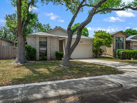 Super cute garden home in popular Spring Creek Forest. As you walk to the front door, you'll be delighted to find a tiny private courtyard. A bench with pillows and plants would look great there. The living area features bamboo flooring, a 15-foot cathedral ceiling, a fireplace with an art niche above, and access to the covered patio. The updated kitchen has Corian countertops with seamless sink, baroque seashell brick backsplash, and an electric convection stove. Recent interior paint and carpet. Lots of natural light. Additional highlights include roof replacement - 2024, Trane AC unit - 2018, water softener, and energy-saving solar panels with an inverter battery. The location is conveniently close to IH-35, Loop 1604, Randolph AFB, and Fort Sam Houston.