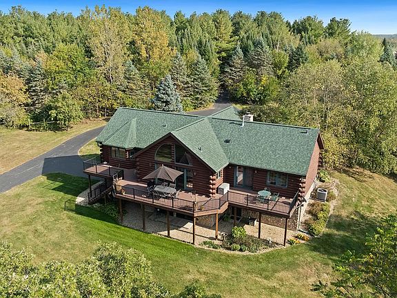 Welcome to your dream retreat! This beautifully crafted log home custom built by Brian Stevens offers 3 BR, 3 BA, and is nestled on 40 private acres, 12 of which are tillable, complete with a large pond with a pump, mature fruit trees, and a scenic creek running through the property. Step inside to soaring cathedral wood ceilings w/ exposed wood beams & charming half log interior walls. The spacious living area features a cozy gas stone fireplace flanked by custom built bookshelves. The open concept kitchen is a chef’s delight w/ hickory cabinetry, granite countertops, and a large island w/ seating, perfect for entertaining. Just off the kitchen, you’ll find an office space with built in window seat and easy access to the back wrap around deck. The oversized master suite is a true sanctuary, featuring vaulted ceilings, private deck access, a large walk in closet, & a luxurious attached bath with its own vaulted ceiling. The fully exposed LL adds even more living space with a generous family room, full bathroom, laundry room, and a 3rd bedroom, ideal for guests or extended family. Additional highlights: Roof (2021), Furnace, Aprilaire & A/C (2021), Security system, 2x6 construction for added efficiency, 30x40 outbuilding with concrete floor and metal roof, Attached 2 car garage. Whether you’re looking for a peaceful homestead, a nature lover’s paradise, or a recreational property, this one of a kind log home has it all. Enjoy the beauty of every season on this heavily wooded lot with trails, tillable land, and abundant wildlife.