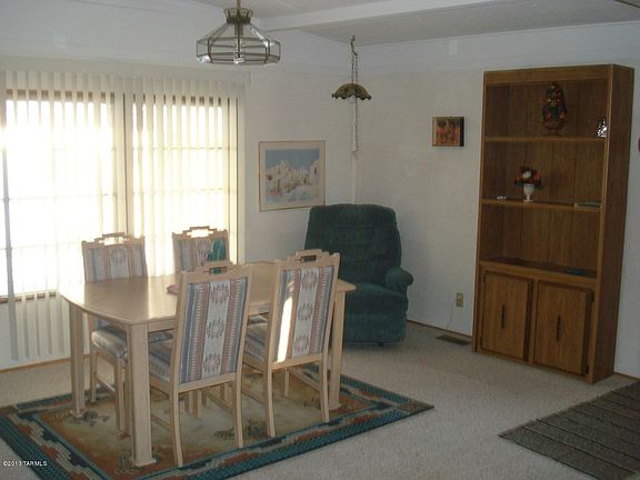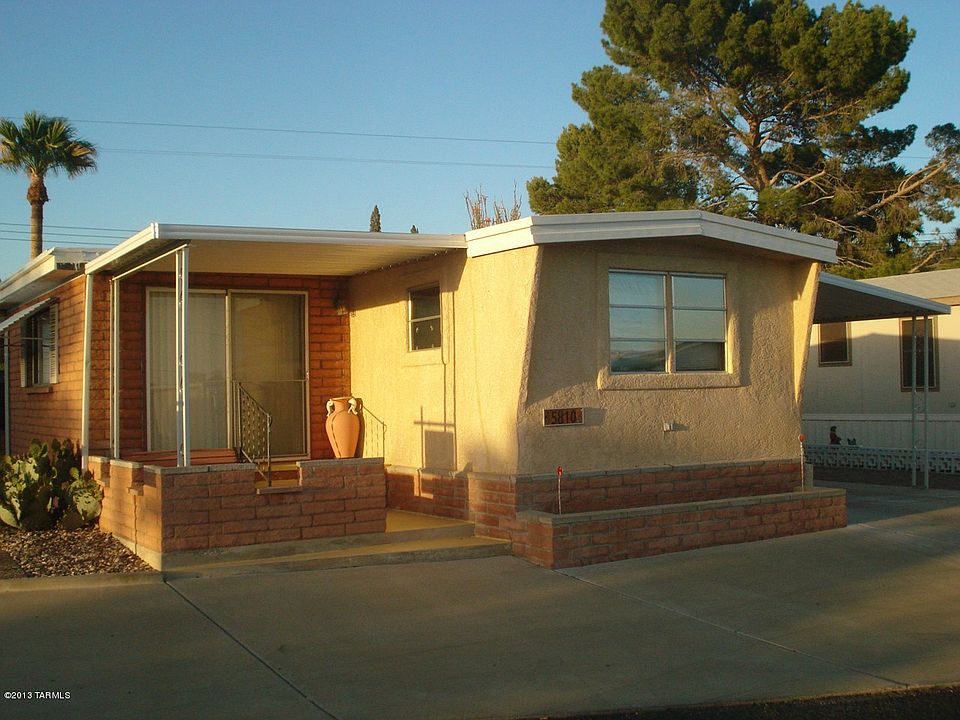 Very nice furnished 2 bedroom, 1 3/4 bath adobe exterior home. Brick addition creates open kitchen and living dining area, updated built-in oven, storage building and ample parking. Located in Tucson Estates, a 55+ community with many amenities: golf course, swimming pools, spa, exercise room, tennis, shuffleboard and many more activities.