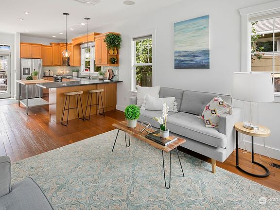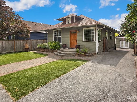 Impeccably restored 2 bed/1 bath (+bonus rm) craftsman home located on quiet street in West Woodland neighborhood. Modern updates blend seamlessly w/ traditional craftsman features- original fir hardwoods & high ceilings complement open concept floor plan- spacious living room, remodeled kitchen w/ island seating, new appliances (gas range), 2 ample bdrms, stunning full bath & whole house AC. Backyard designed for entertaining- large deck w/ awning & sound syst, overlooking a manicured backyard w/ hot tub, patio & turfed lawn. Converted detached garage at end of long driveway (plenty of parking) offers add'l living space- office, gym or rec room. Easy commute to downtown Ballard, I5 & 99, short walk to schools/parks. Preinspection available