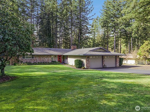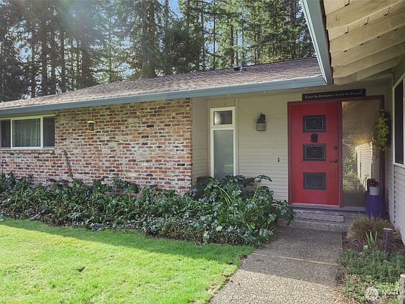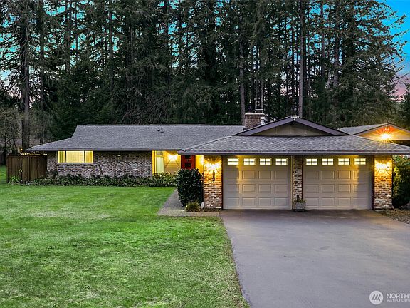 You'll love the vaulted ceiling & exposed beams framing this tree-lined view out floor-to-ceiling windows! Dual brick fireplaces (both gas & wood-burning) bring a comfortable vibe, & thoughtful touches of quality show care & pride of ownership throughout. 3 bedrooms + office w closet, cozy family room off kitchen--perfect for relaxing, stunning living & dining combination, updated fixtures, recent appliances, generator, & fabulous deck for alfresco BBQ/dining. Relish time outside or simply enjoy the lush green views; private patio off primary is wired & ready for hot tub; large shop/carport for RV/boat; firepit, too. Wonderful, established neighborhood w park/playground incl basketball/pickleball, minutes from Black Lake park/boat launch!