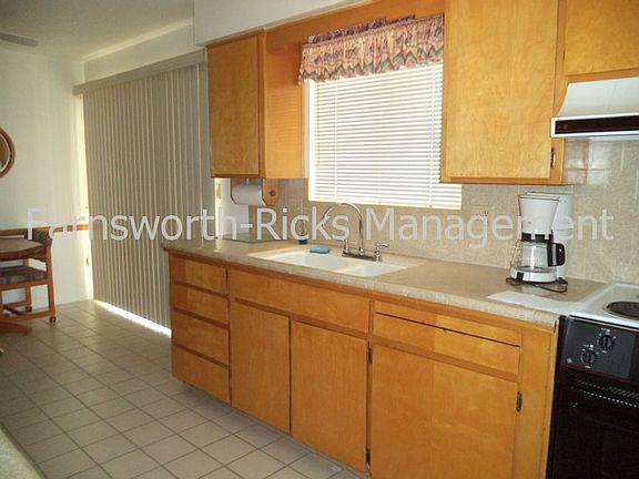 This is a cute house in a nice neighborhood. There is a mater bedroom with King-size bed. 2nd bedroom is unfurnished. One very updated bathroom, with extra toilet in laundry room. Nice fenced in backyard with patio. There is no dishwasher and no garbage disposal.