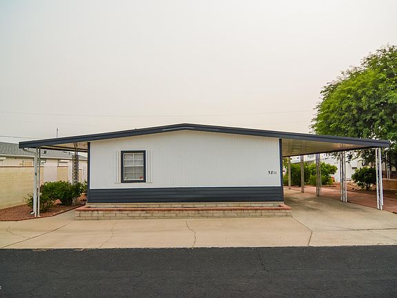 Vacant, sanitized, freshly updated mobile home. Located in a scenic South Tucson location. 55+ Community. New custom interior and exterior paint. A wonderful living room with light filled living. Rich wood laminate flooring. New carpet and padding in bedrooms and living areas. Updated modern kitchen. New SS appliances. Front features Arizona room. New door hardware and light fixtures. One car carport. Storage shed. This home is really special.