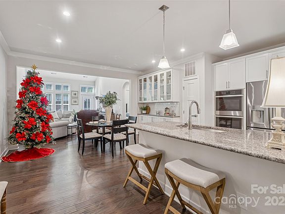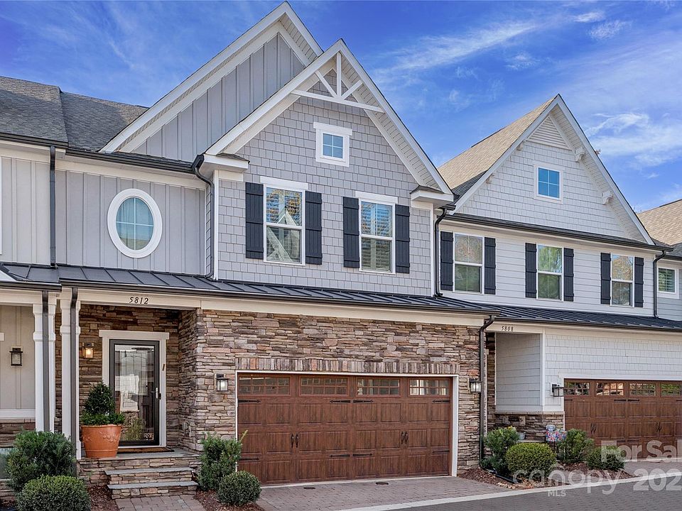 Welcome to this stunning, modern townhome nestled in the highly desirable South Park area of Charlotte. Located in the sought-after Sharon Arbors boutique neighborhood, 5812 Barrowlands Court invites you into a thoughtfully designed space where elegance meets comfort. Bright, open living areas flow effortlessly. The great room features high ceilings and is open to the 2nd story. This home sets the tone for upscale living. The gourmet kitchen boasts white shaker cabinetry, with select glass panels on uppers, stainless steel appliances, granite counters, a gas cooktop and double ovens, ensuring both style and function for everyday meals or entertaining. The spacious main-level primary suite offers convenient single-level living, with a tray ceiling, a beautiful walk in shower and large walk-in closet. Upgraded plantation shutters elevate the space throughout the home. The laundry room is conveniently located on the first floor with a drop zone off the attached garage.