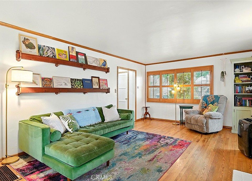 Beautifully upgraded and cared-for home in the highly desirable neighborhood of Lakewood Crest Gardens with attractive upgrades and undeniable charm. This move-in ready 3bed/1bath single-story home situated on a lovely tree-lined street in the heart of the neighborhood offers a variety of outdoor and indoor living options that is rare to find. Step inside to find rich hardwood floors, crown molding, and wood shutters adding timeless appeal throughout. The living room features a cozy gas fireplace and dual-pane windows providing an abundance of natural light. The remodeled kitchen boasts built-in appliances, rich wood cabinetry, and plenty of storage—perfect for everyday living and entertaining. The spa-like bathroom offers dual sinks, modern tile, and a beautiful walk-in shower. All three bedrooms provide comfortable living space, complemented by an inside laundry room, pull-down attic stairs, attic storage, and a whole house fan for added comfort. Step outside to a private backyard oasis with a covered patio, hot tub, and a fully enclosed yard. A long driveway leads to a detached 2-car garage. Stylish, functional, and centrally located—this is Lakewood living at its finest. Come and see this exceptional home for yourself and take advantage of this rare opportunity to write the next chapter of your story in an ideal location and setting.