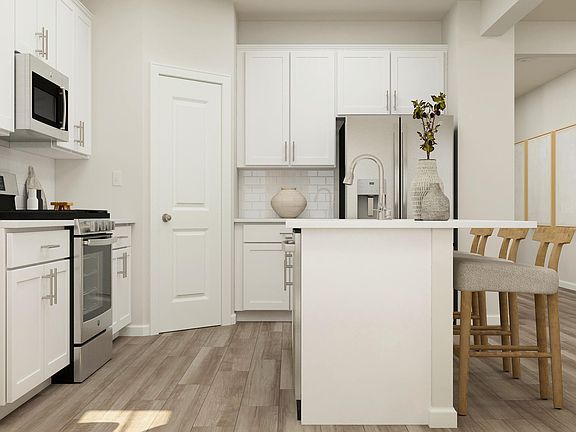 This new two-story home showcases a gracious design with abundant room to grow and entertain. The first floor offers a flex room and formal dining room that complements the casual Great Room and nook, plus a modern kitchen and attached patio. On the same level is a bedroom ideal for overnight guests, while upstairs are the game room and the remaining four bedrooms. The owner's suite is a spacious escape with an adjoining bathroom and walk-in closet. Prices, dimensions and features may vary and are subject to change. Photos are for illustrative purposes only.