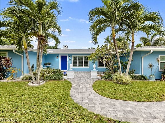 Direct Gulf access and a proven history of zero storm surge or water intrusion! This beautiful residence is reminiscent of Old Florida, however, it has been updated with modern conveniences and sits at a nice elevation at the quiet end of a deep-water canal. Located in the coveted riverside McGregor Corridor, a semi-circle paved driveway and spacious front patio welcome you into the home. Main features include a Living Room, Family Room, 3 en suite bedrooms plus an additional flex room/office/optional 4th bedroom, along with 4 full baths—all thoughtfully designed across nearly 4,800 square feet of indoor/outdoor living space on just under half an acre. Full hurricane-impact windows and doors add both security and efficiency. Just a three-minute cruise to the Caloosahatchee River and on to the Gulf of Mexico puts boating, fishing, and sunset views right at your fingertips. A brand-new pool heater (installed spring 2025) allows year-round swimming in your private backyard oasis. Inside, the chef’s Kitchen shines with high-end appliances, a double refrigerator/freezer, a gas range, wine cooler, granite counters, and abundant cabinetry. There's also extra space for a Breakfast Nook with French Doors leading to a private, quaint patio. The inviting Living Room centers around a rare, working wood-burning fireplace, while the spacious Dining Room easily accommodates large, or intimate, gatherings of family and friends. Perfect for today’s lifestyles, both the generous Family Room and a separate-entry flex room offer ideal spaces for working from home, hobbies, or private guest quarters. The Primary Suite is a true retreat, featuring a large walk-in closet and a spa-inspired bath with dual vanities, a soaking tub, and a walk-in shower. French doors lead outside to a resort-style outdoor Lanai complete with a fully equipped kitchen (propane grill + burner), a large pool, and approximately 600 square feet of covered patio for comfortable all-season enjoyment. Mature, lush landscaping—including multiple fruiting and flowering varieties and palms—provides a sense of privacy and tropical charm while custom landscape lighting creates additional ambience. The Trex boat dock is outfitted with a covered 7,000 lb lift, electric and water, and a large waterside seating area. An oversized detached three-car garage provides extensive room for vehicles, storage, and workshop space. Recent upgrades offer added value and peace of mind: two new AC units (2023), updated electrical wiring (2023), Tesla/EV charger (2023), roof (2018), baby-safe pool gate (2021), superscreen pool cage (2022), and many more improvements. Blending luxury, functionality, and an unbeatable location, this exceptional property is truly one of a kind. Don’t miss your chance to experience it—schedule your private showing today!