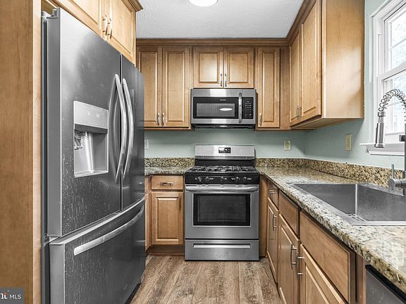 Renovated and ready to go, this fantastic two-level townhome features a covered front porch and numerous updates. Freshly painted inside and out, the main level includes a spacious living room, formal dining room, and a beautifully renovated kitchen with granite countertops, stainless steel appliances, 42-inch maple cabinets, updated lighting, and a breakfast nook. New LVP flooring flows through the living and dining areas, adding warmth and style. A back door opens to a large deck overlooking the fully fenced backyard with a 6-foot privacy fence and storage shed. The main level also offers a half bath and laundry closet with full-size washer/dryer, tile accents, and built-in shelving. Roof and windows have been updated, and the HVAC system was replaced approximately nine years ago. Upstairs, the owner’s suite boasts a vaulted ceiling, double-door closet, and updated bath with granite vanity, designer tile, and glass shower. Two additional bedrooms share a hall bath with granite vanity, tile flooring, and tiled tub/shower surround. Great Condition! Great Price!