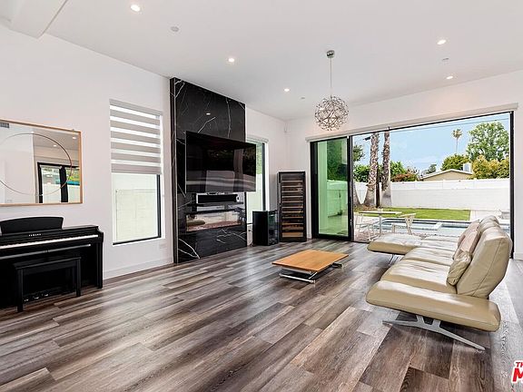Newly built in 2020, this modern two-story home features 5 ensuite bedrooms, 5.5 baths, and an office. The open floor plan offers high ceilings, floor-to-ceiling windows, and seamless indoor-outdoor flow. The elegant living and dining area centers around a stone-framed linear fireplace, while the gourmet kitchen boasts Miele appliances, a center island, and breakfast bar. Sliding glass doors lead to an entertainer's backyard with a sunken fire pit, BBQ area, and sparkling saltwater pool & spa. The luxurious primary suite includes a spa-like bath, walk-in closet, and private balcony. Enjoy multiple patios, a sundeck with city views, and a 2-car garage with EV charger - modern elegance and comfort in every detail.