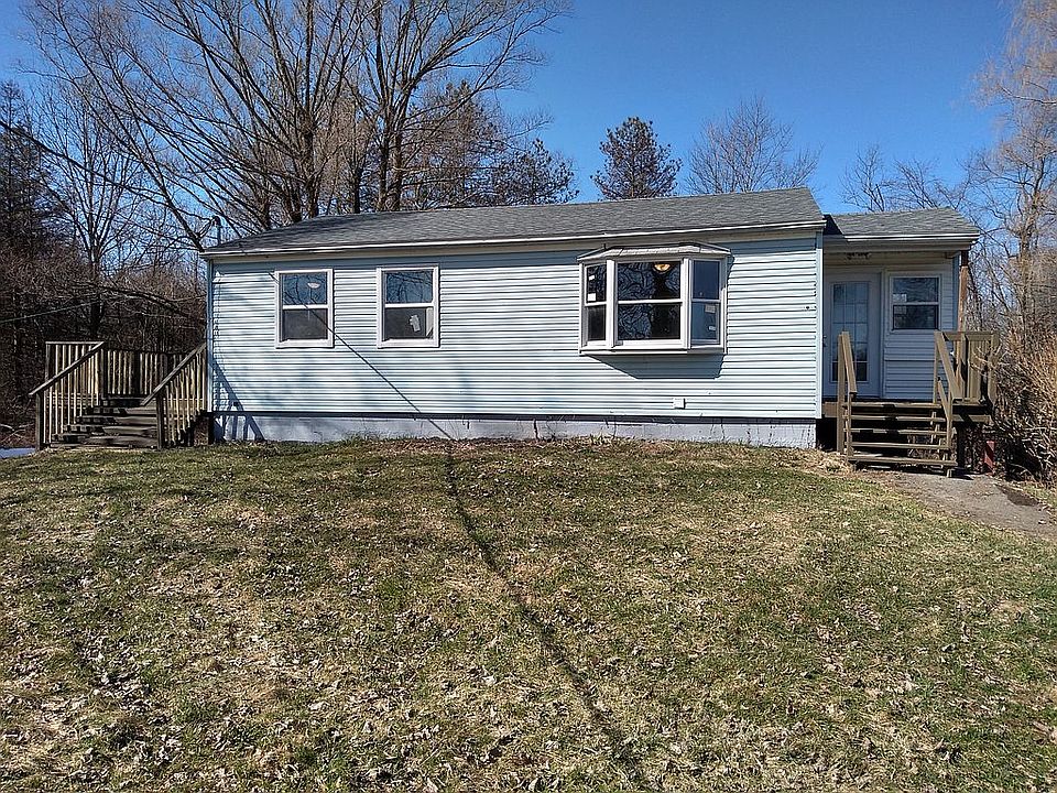 Super cute ranch style home on half an acre. The majority of this 2 bedroom 1 bath home has been remodeled. You will find laminate flooring, thermal pane vinyl replacement windows, new counter top, cabinets, energy efficient appliances and improved well. Home sits nicely back from road with a secluded yard for much needed peace and tranquility. The large deck ready for your back yard BBQ with family and friends! Full basement has plenty of space for storage and more. Come see for yourself. This may be the home for you!
