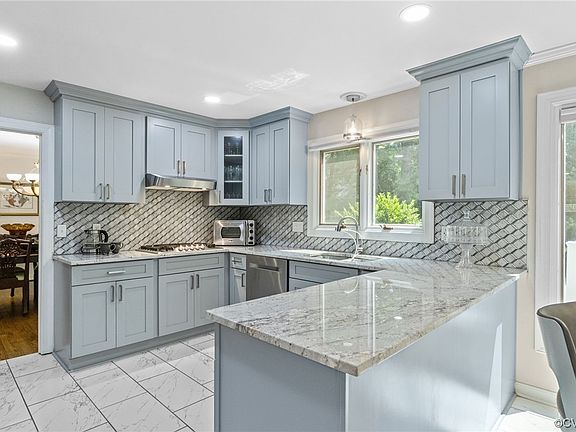 Tired of seeing the same floor plan? This is your chance to be wowed! This gorgeous home has been renovated to perfection. Natural light spills in throughout, with large casement windows showcasing the beautiful hardwood floors in the LR, DR and FR. The kitchen is completely renovated boasting granite counters, wall oven and microwave, gas cooking, tile backsplash, new grey cabinets and recessed lights. The kitchen has a large breakfast area with windows looking into the peaceful back yard. The family room has a gas fireplace with new hearth and surround. The sunroom opens to the deck and the doors surrounding it can be opened for a screen porch. There is a huge laundry room on this level that doubles as an extra pantry and you also have a renovated guest bath. The second floor has 4 bedrooms, full bath and a loft. Hardwood floors in the loft, hall and one bedroom. All bedrooms are spacious with good closet space. The primary bedroom has a completely renovated en-suite. The entire yard is beautifully landscaped, with a small creek running alongside. The deck and front porch were upgraded to composite decking for easy living! Ask for MLS attachment for other improvements.