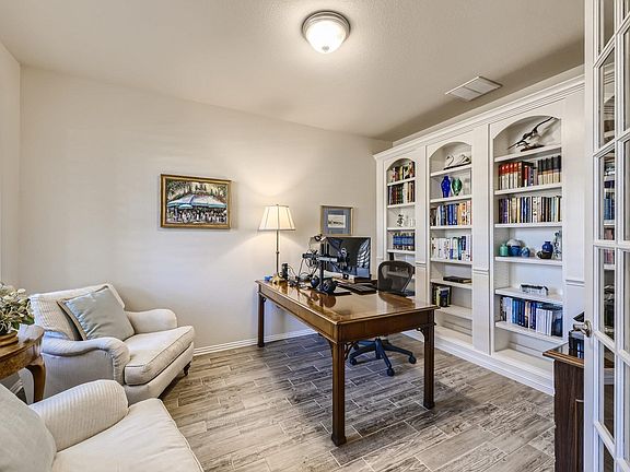 Office-built-in bookcaseOutdoor livingWood-look tile flooringBreakfast roomTravertine floorTankless hot waterDeep soaking tub