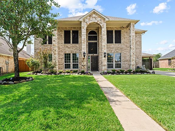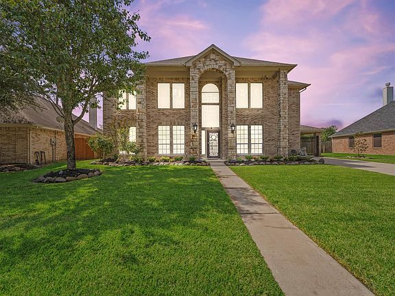 It shows like a model home! Two-story five-bedroom home with upgrades at every turn. Living area with a two-story ceiling & a wall of tall windows and arches; your own Villa. Study w/French glass doors. Cozy three-sided gas fireplace in kitchen, breakfast, & living. Updated island kitchen, gas cooktop, Quartz counters, glass backsplash, soft color theme, crown molding, soft close drawers/cabinets, & 6-inch baseboards. Oversized primary suite w/sitting area & en-suite bath with barn doors, soaking tub, separate walk-in shower w/bench & floor-to-ceiling tile, large walk-in closet w/custom built-ins. Game room upstairs. Energy Efficient home. New roof 2020. Gated iron driveway access, porte cochere, & additional parking. New pool heater, Whole house generator and Water softener system 2022. 13K +/ 80 ft. lot. Serene rock waterfall heated pool/spa, surrounded by extensive greenbelt. Palm trees are your daily backdrop. Cypresswood Golf Course Community has two pools, walking trails, a clubhouse, a pavilion, & multiple playgrounds, & it is close to Bush Intl Airport.