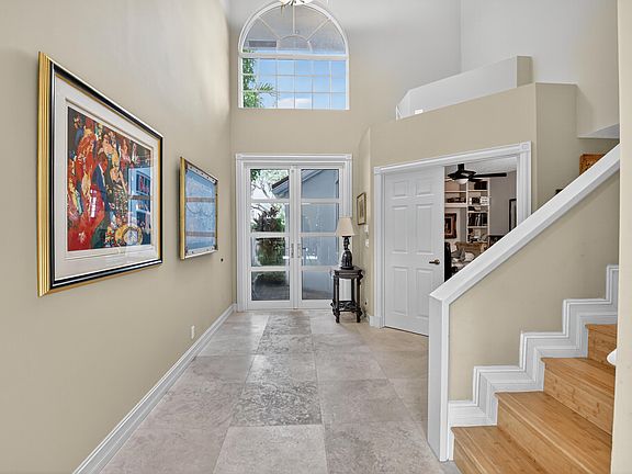 Nestled on one of the largest and most private lots in The Cloisters at Broken Sound Country Club, this residence blends timeless elegance with thoughtful modern updates. From the moment you arrive, the hurricane-rated glass front door and full-house Low E hurricane windows provide both beauty and peace of mind along with all the lighting is LED bulbs.The heart of the home is the chef's kitchen, fully renovated in 2021 with sleek stainless steel appliances and an open, inviting design ideal for entertaining. The main floor showcases Saturnia marble floors complemented by soft carpeting for comfort in the primary suite. The second story features engineered wood and carpeting in the bedrooms. Custom built-ins enhance one of the upstairs bedrooms. While, a fourth bedroom has been transformed into a sophisticated office with cabinetry offering flexibility to suit your lifestyle.